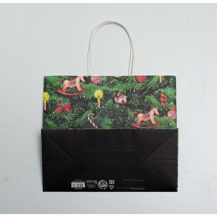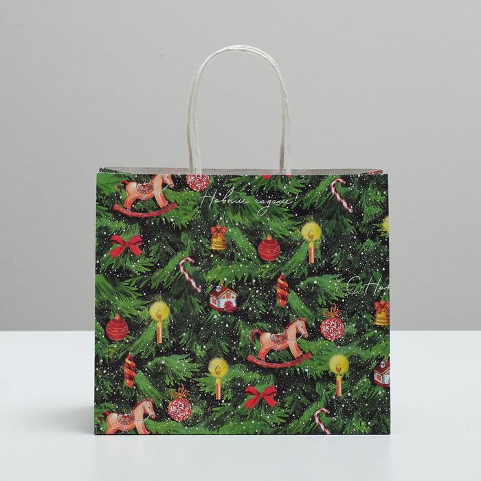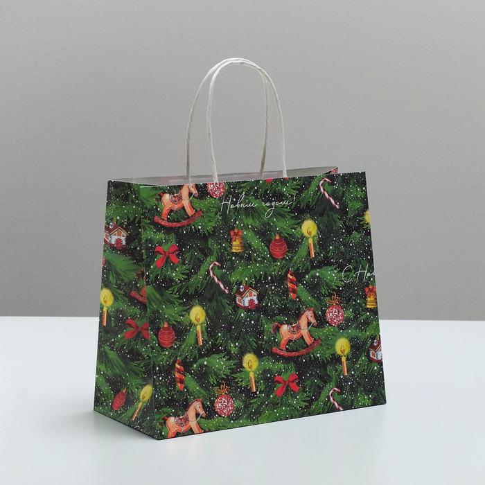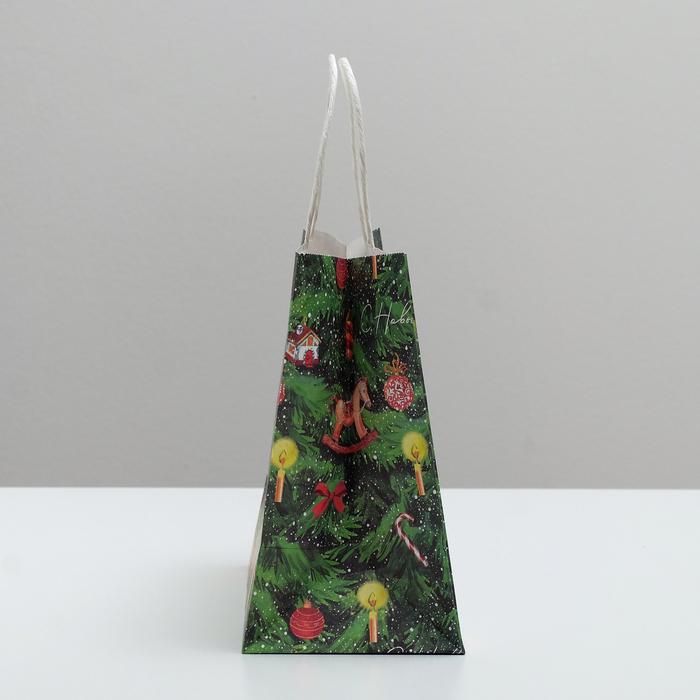 Пакет подарочный крафтовый «Новогодняя ёлочка», 22 х 25 х 12 см
