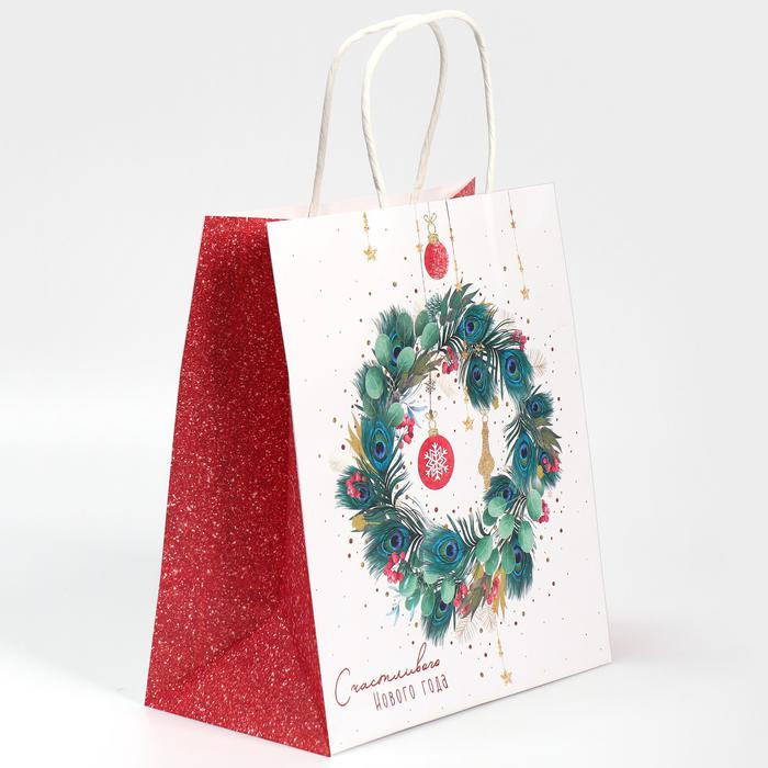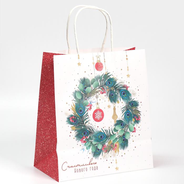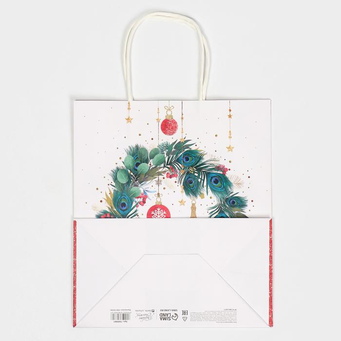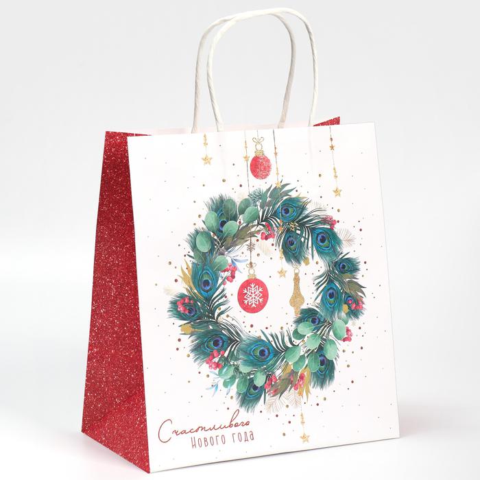 Пакет подарочный крафтовый «Счастье в каждый дом», 22 х 25 х 12 см