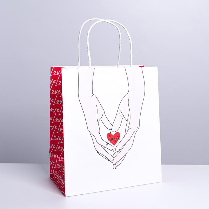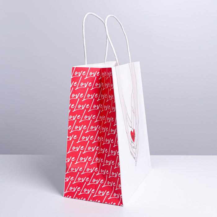 Пакет подарочный крафтовый «Сердце», 22 х 25 х 12 см