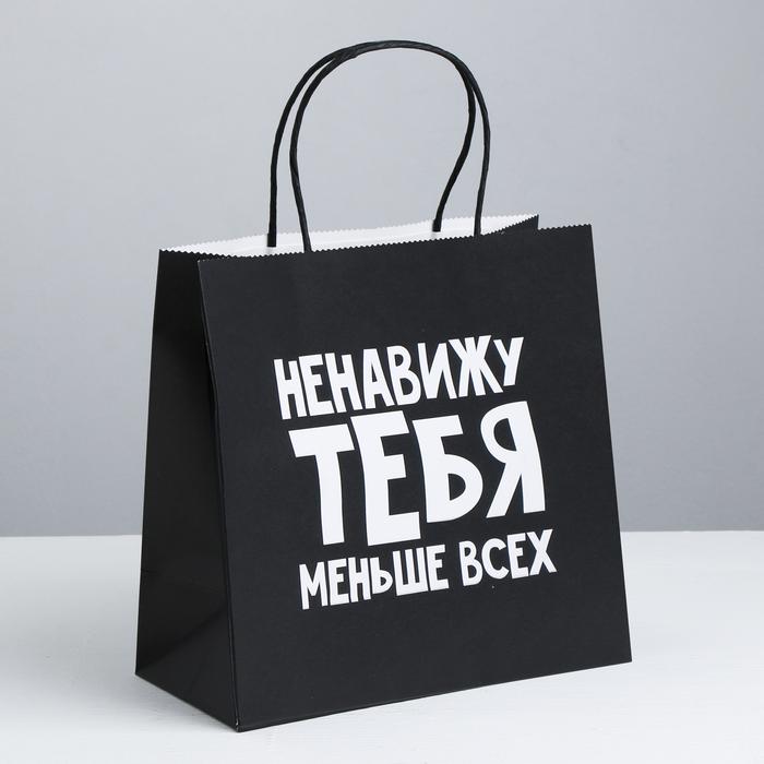 Пакет подарочный «Ненавижу тебя меньше всех», 22 x 22 x 11 см
