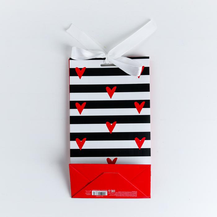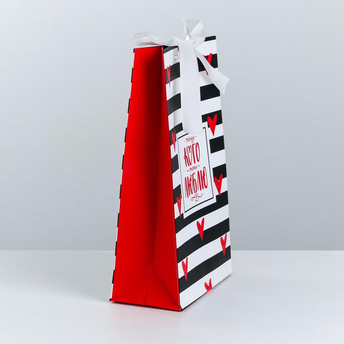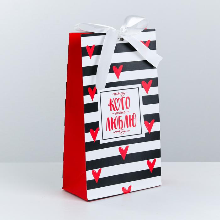 Пакет подарочный с лентой «Тому, кого люблю», 13 х 23 х 7 см