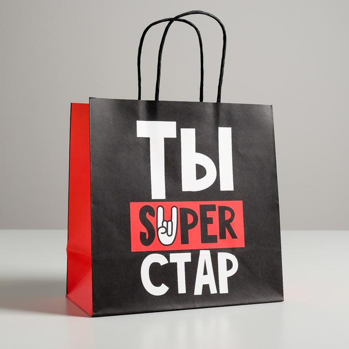 Пакет подарочный «Супер стар», 22 х 22 х 11 см