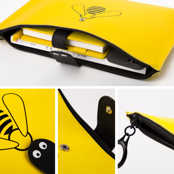 Яркий пчелиный кейс украсит ваши скучные будни! rnКейс из мягкой PU-кожи позволяет вместить в себя все самое необходимое: блокнот, письменные принадлежности, стикеры, смартфон и его аксессуары и много другое!rnТакой кейс сохранит важные документы и принадлежности в целости и сохранности благодаря герметичным швам и застёжке-молнии.rn