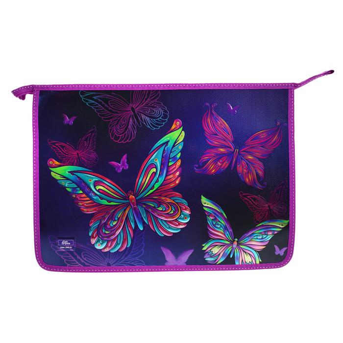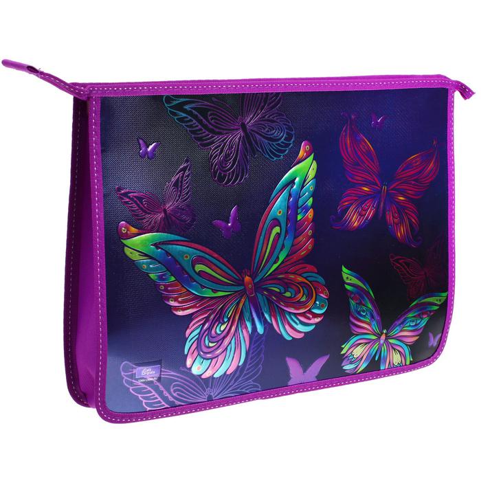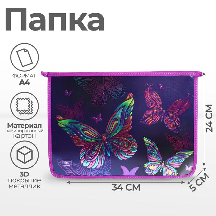 Папка для тетрадей А4, 230 х 325 х 50 мм, молния сверху, Calligrata “Бабочка”, объёмный 3D-рисунок с эффектом металлика