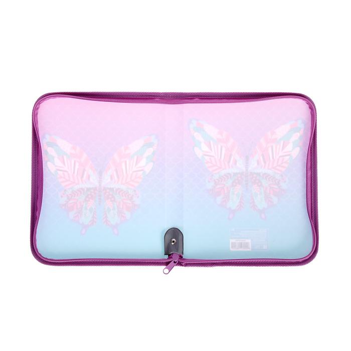 Папка для тетрадей А5, молния вокруг, пластиковая, Calligrata, «Бабочка»