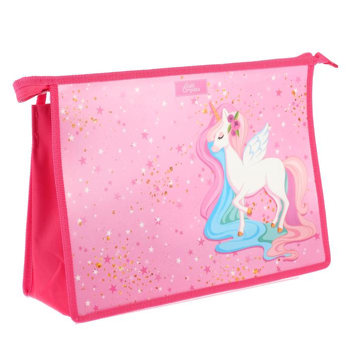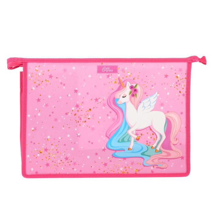 Папка для труда А4, молния сверху, пластиковая, Calligrata, «Сказочный единорог»