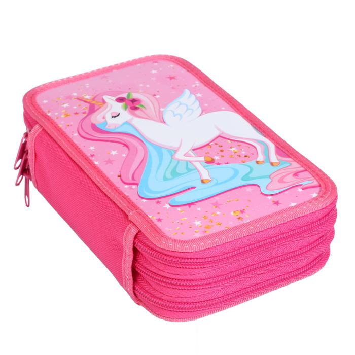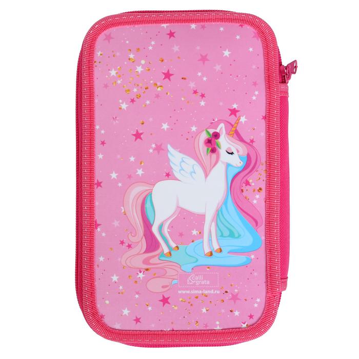 Пенал 3 секции 125 х 205, ламинированный картон Calligrata, для девочки «Сказочный единорог»