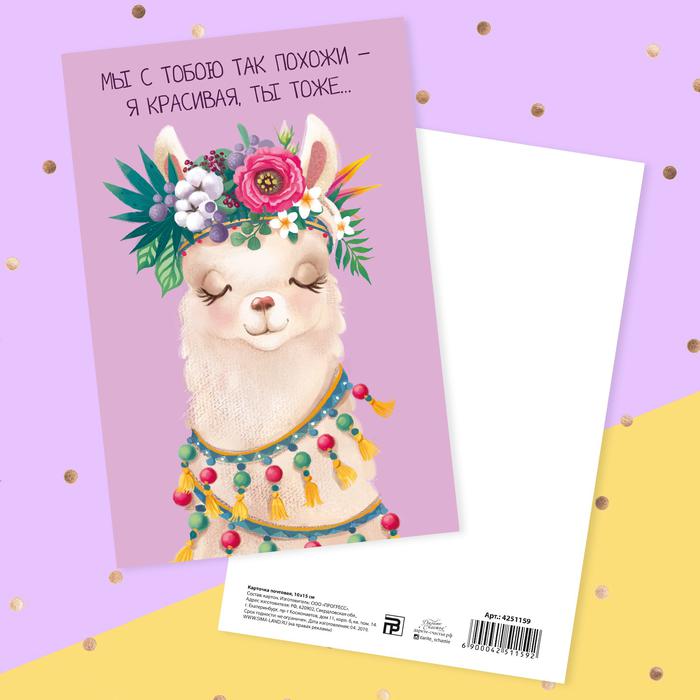 Почтовая карточка «Мы с тобою так похожи» лама, 10 х 15 см