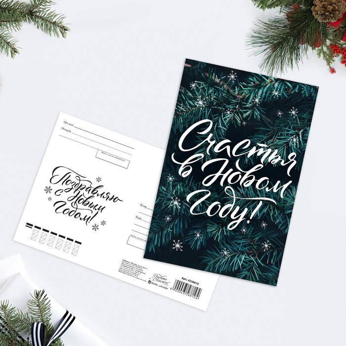 Почтовая карточка «Счастья в Новом году» еловые веточки, 10 x 15 см