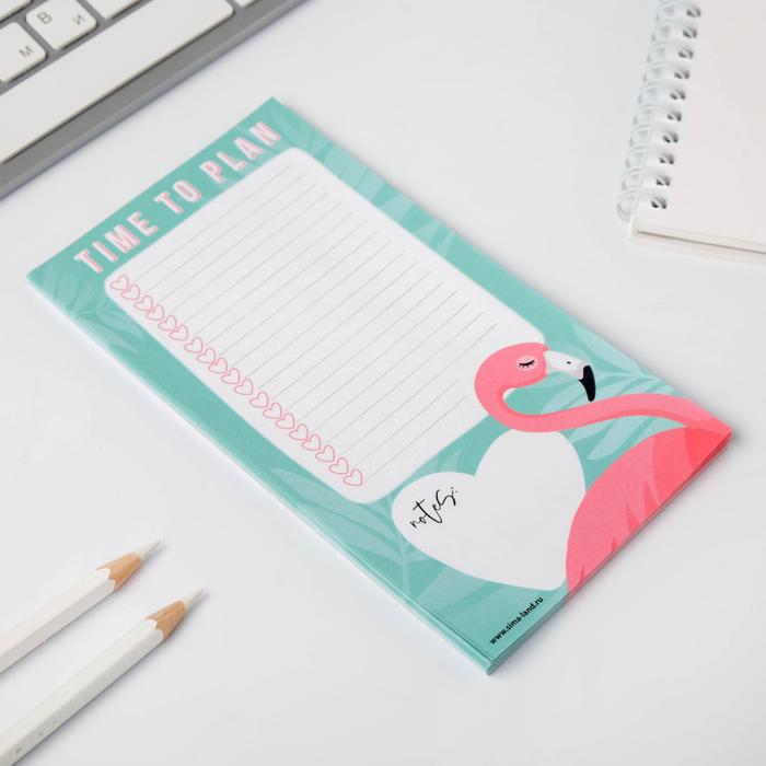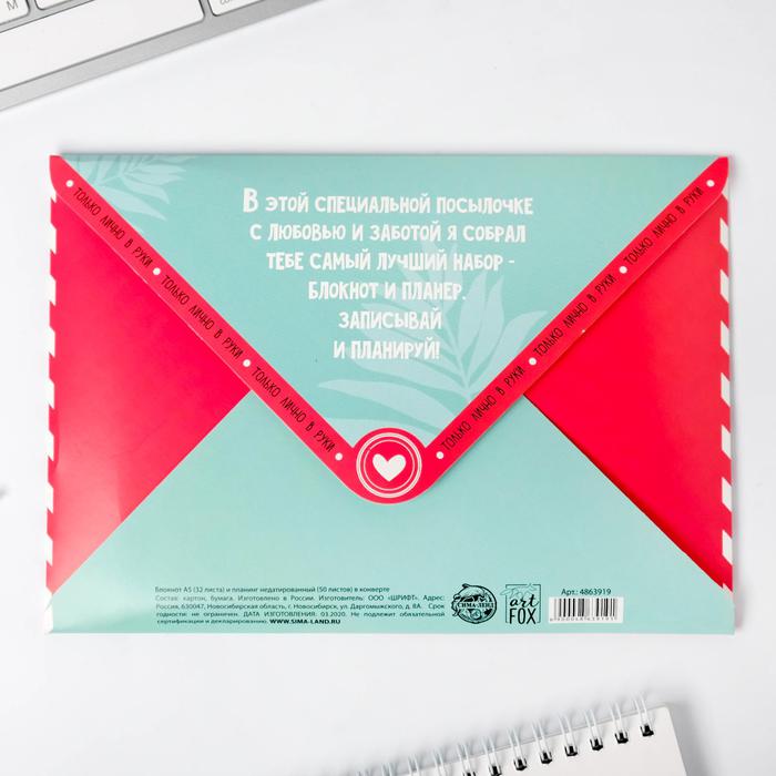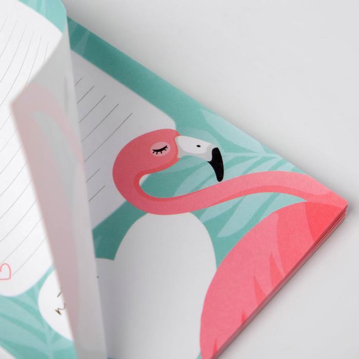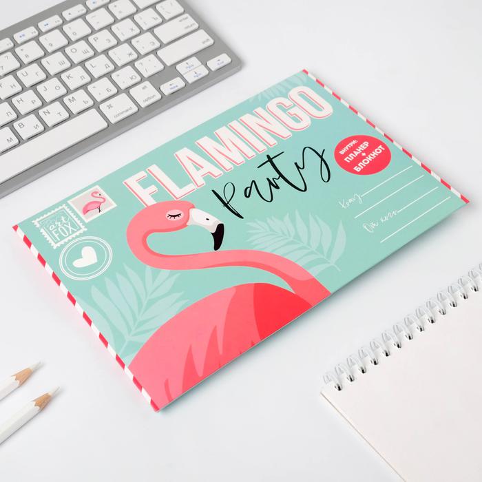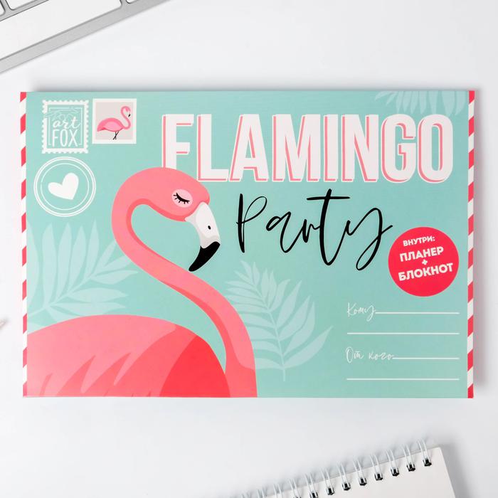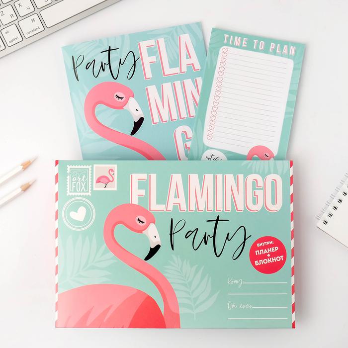 Подарочный конверт: блокнот А5, 32 листа и планинг 50 листов “Фламинго
