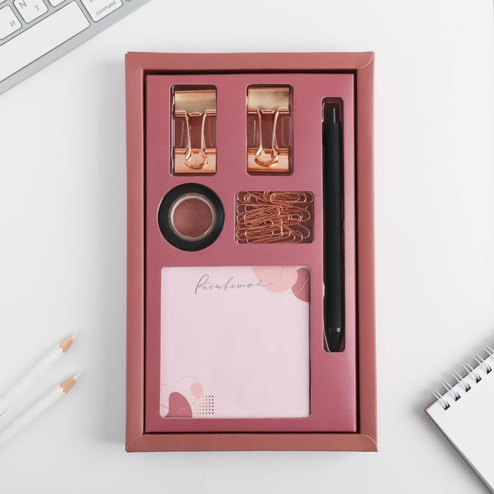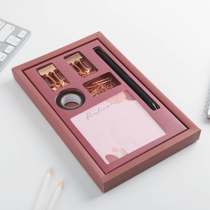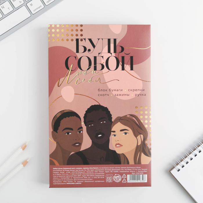 Подарочный набор «Будь собой», блок бумаги 80 л, скотч, зажимы, скрепки, ручка