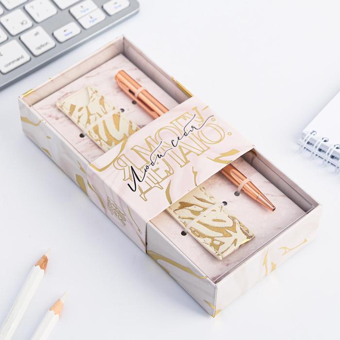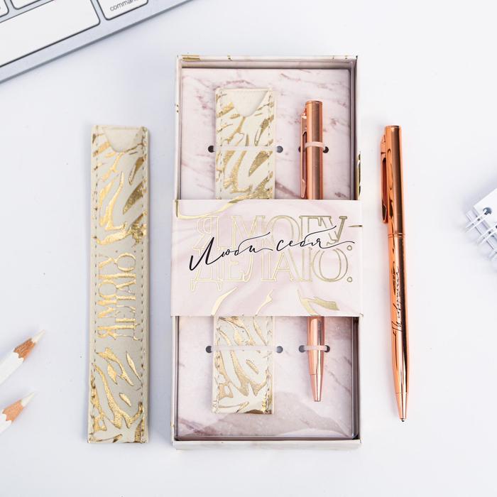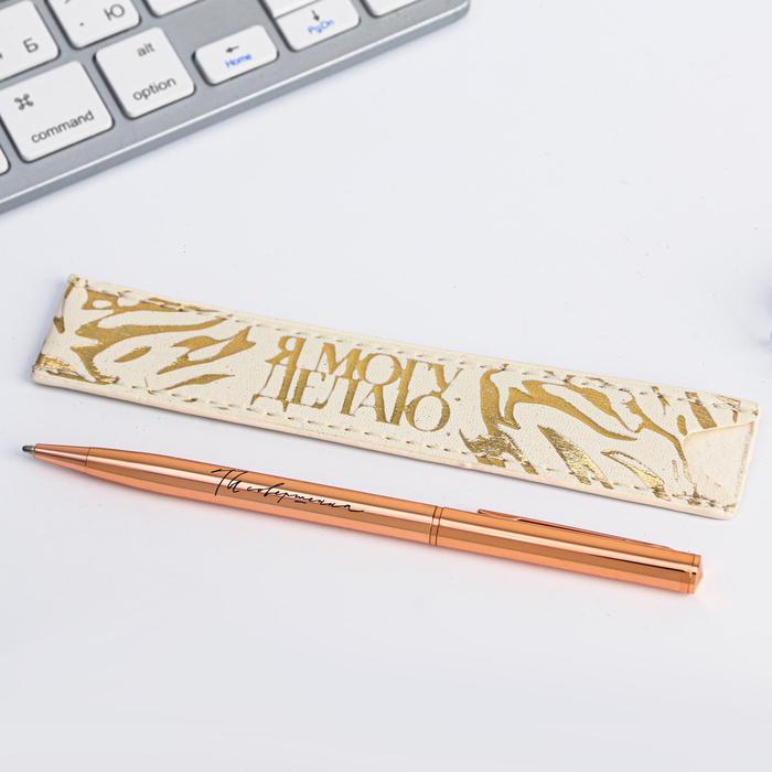 Подарочный набор ручка розовое золото и кожзам чехол “Я могу. Делаю