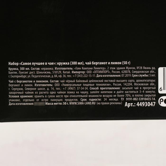 Подарочный набор «Самое лучшее в чае»: кружка 300 мл, чай бергамот и лимон 50 г