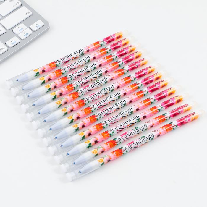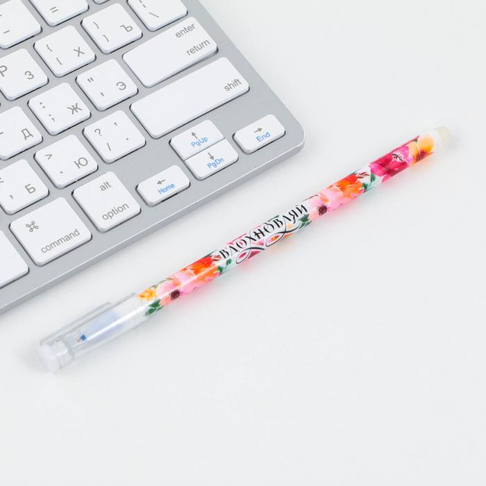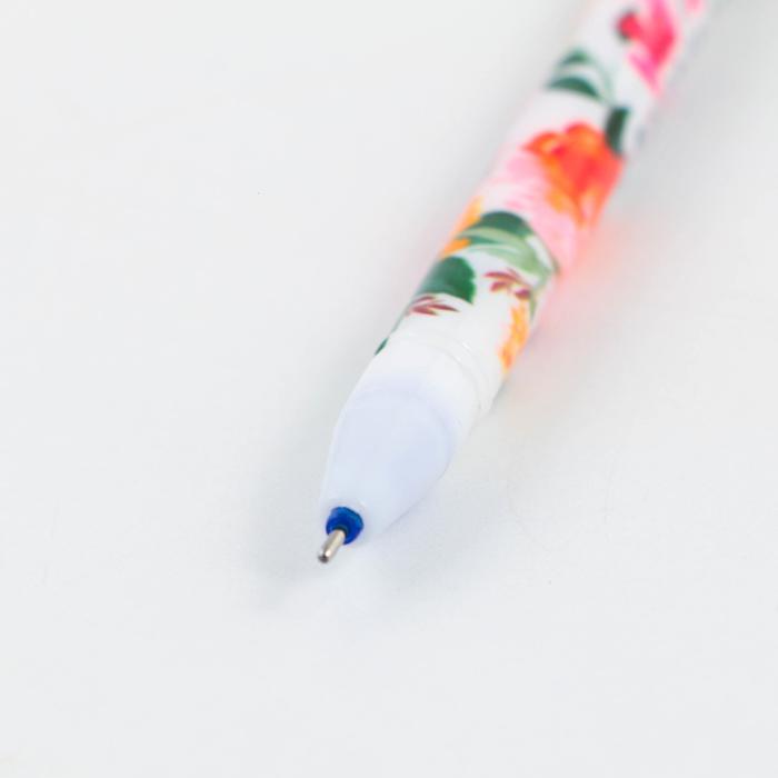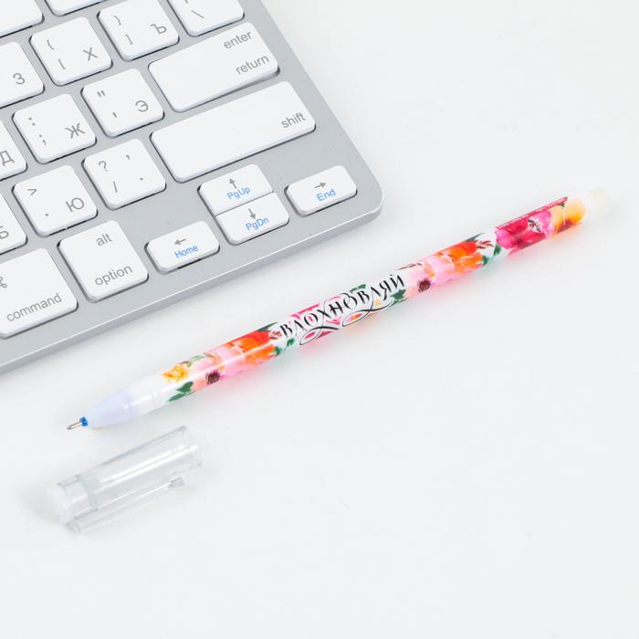 Ручка пластик пиши-стирай с колпачком «С 8 Марта», синяя паста, гелевая 0,5 мм .