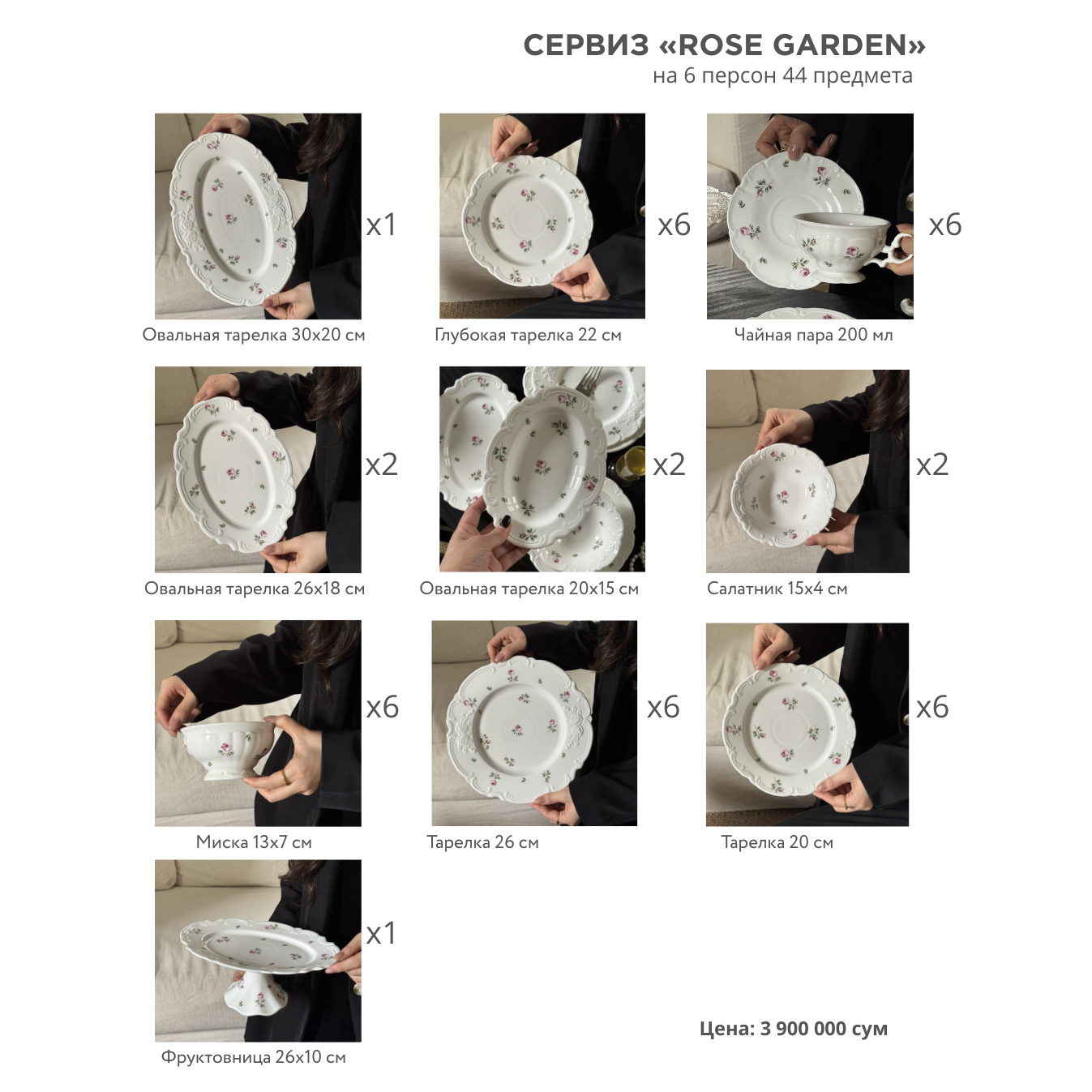 Сервиз «Rose Garden» на 6 персон 44 предмета
