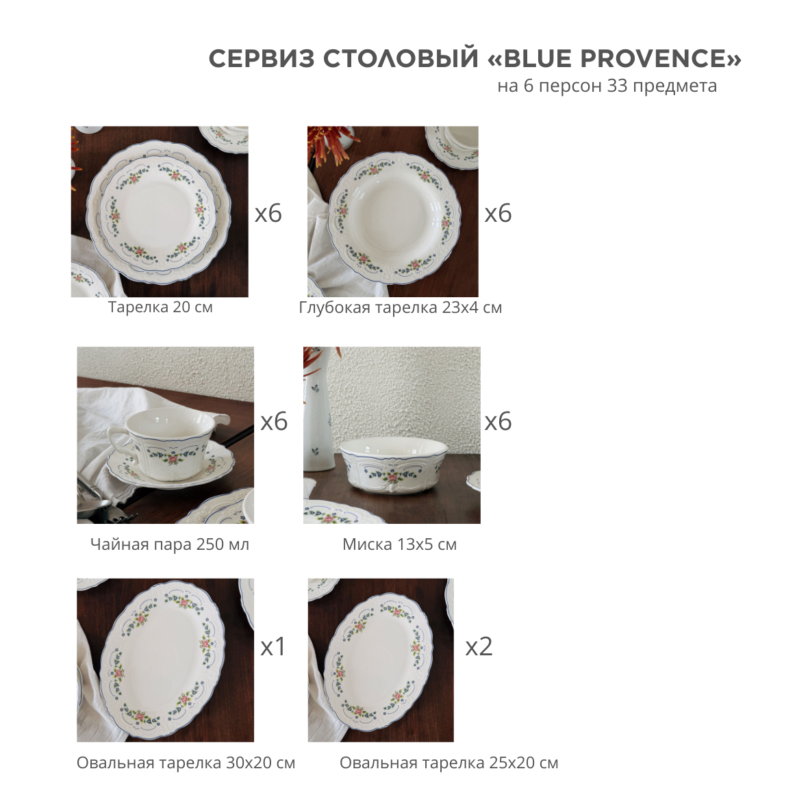 Сервиз столовый «Blue Provence» на 6 персон 33 предмета