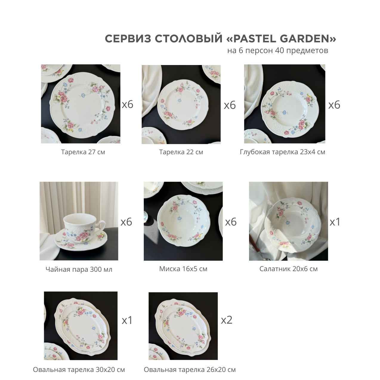 Сервиз столовый «Pastel Garden» на 6 персон 40 предметов
