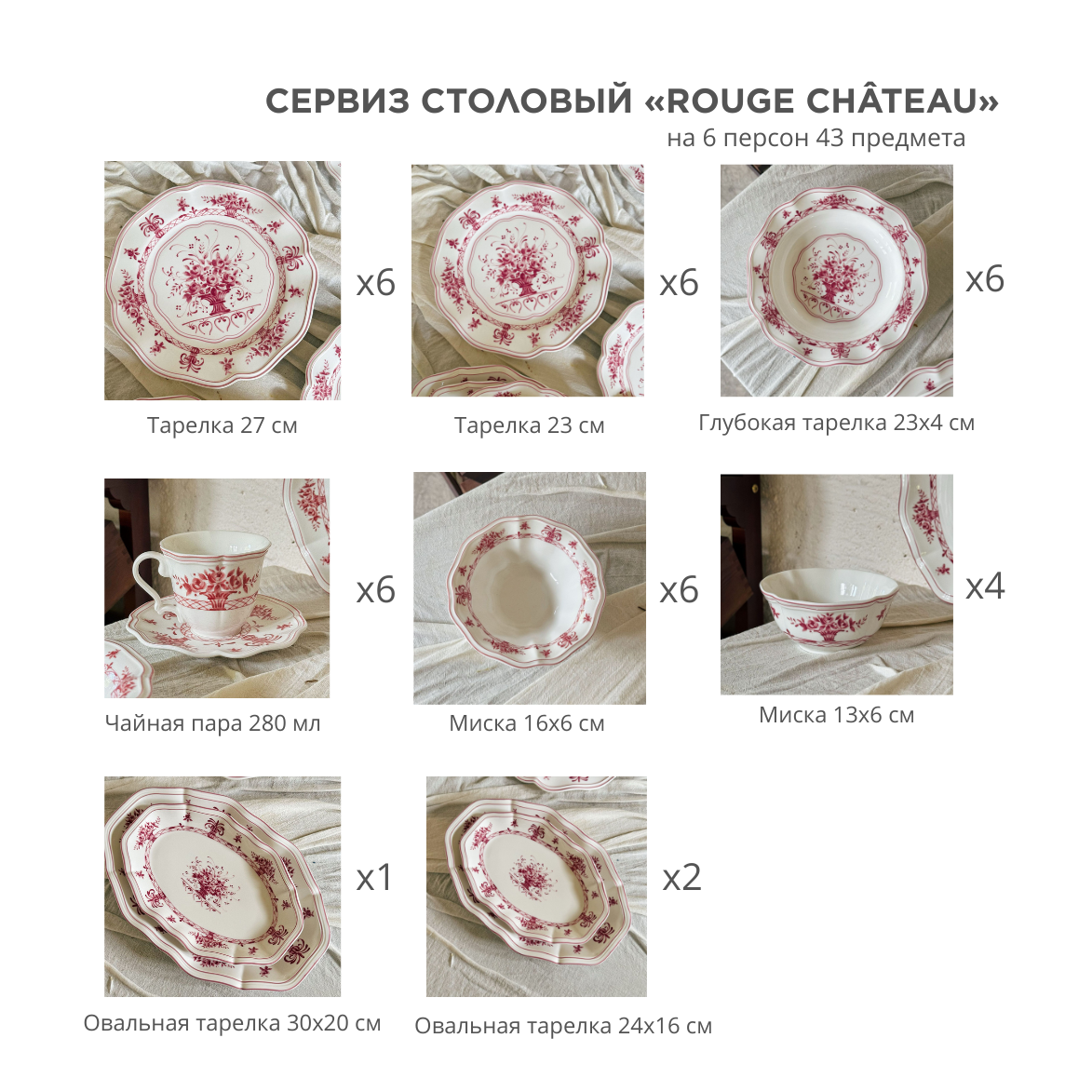 Сервиз столовый «Rouge Chateau» на 6 персон 43 предмета