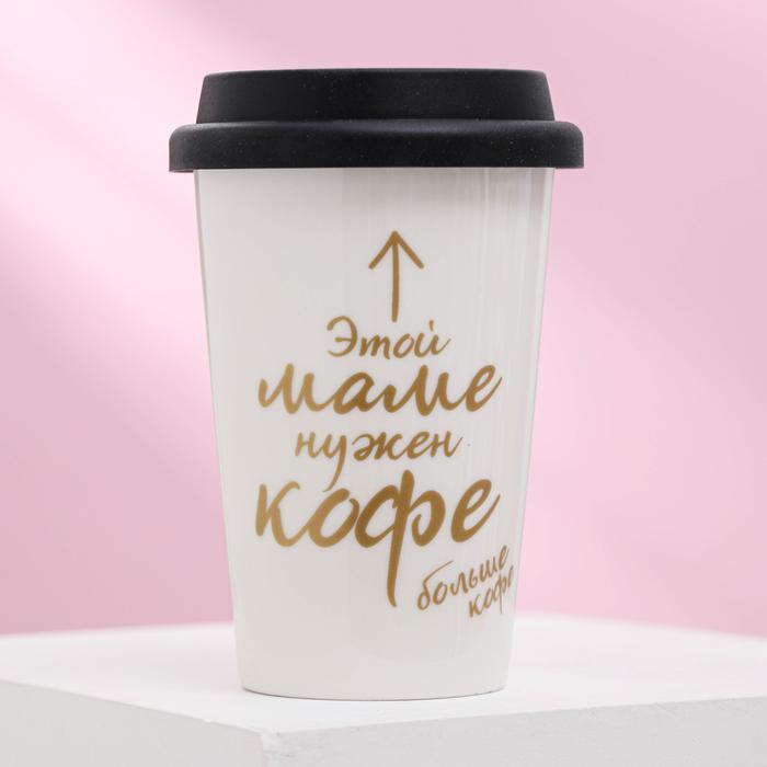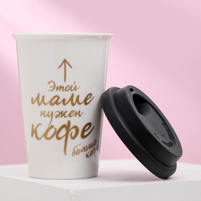 Стакан керамический «Этой маме нужен кофе», с крышкой, 300 мл