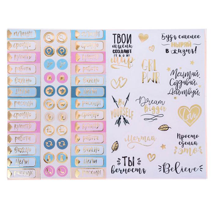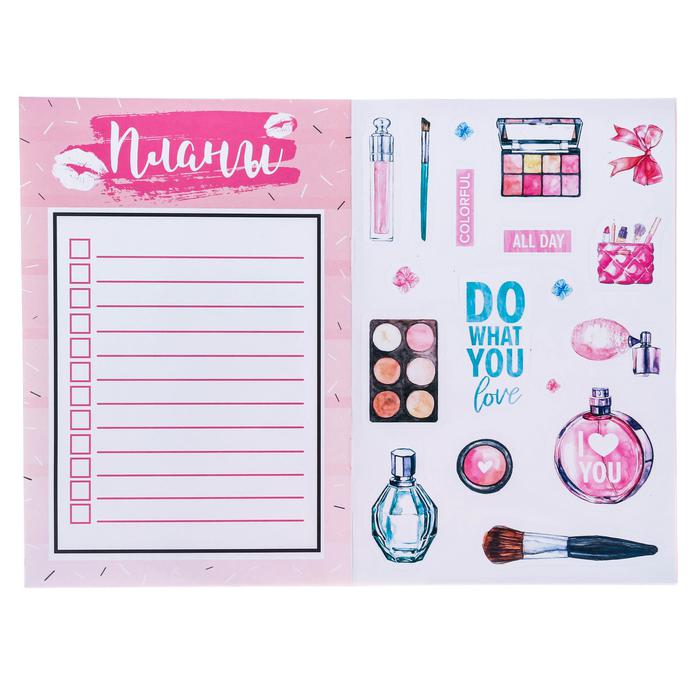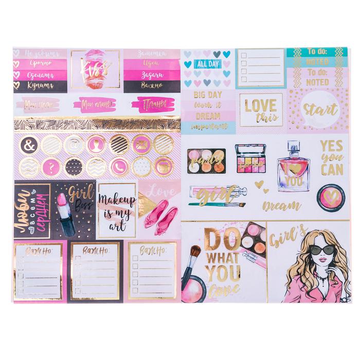 Потрясающий, стильный, оригинальный альбом стильных и модных наклеек. 8 страниц красочных и ярких наклеек с фольгированием помогут украсить блокнот, ежедневник, планер. Конечно, ты можешь украсить ими и все вокруг: стены, мебель, окна в своей комнате, ящик в спортзале – в общем все, что угодно. В альбоме около 250 модных наклеек с фольгированием: косметика, аксессуары, красивые девушки и, конечно, мотивирующие надписи. Отлично подойдет для декора блокнотов, ежедневников, планингов. В альбоме много наклеек для планирования: – стильные заголовки планы, сделать, срочно, купить и т.д. -разделители могут оформить ежедневник или планер, разделив на нужные категории – милые стикеры под вписывание – красочные фигурные наклейки для декора сделают ваш блокнот произведением искусства. А, значит, захочется почаще заглядывать в блокнот, отмечать выполнение планов и целей и ставить новые!