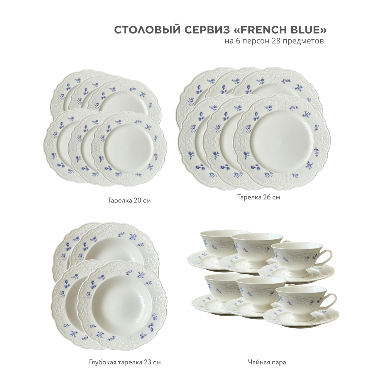 Столовый сервиз «French Blue» на 6 персон 28 предметов