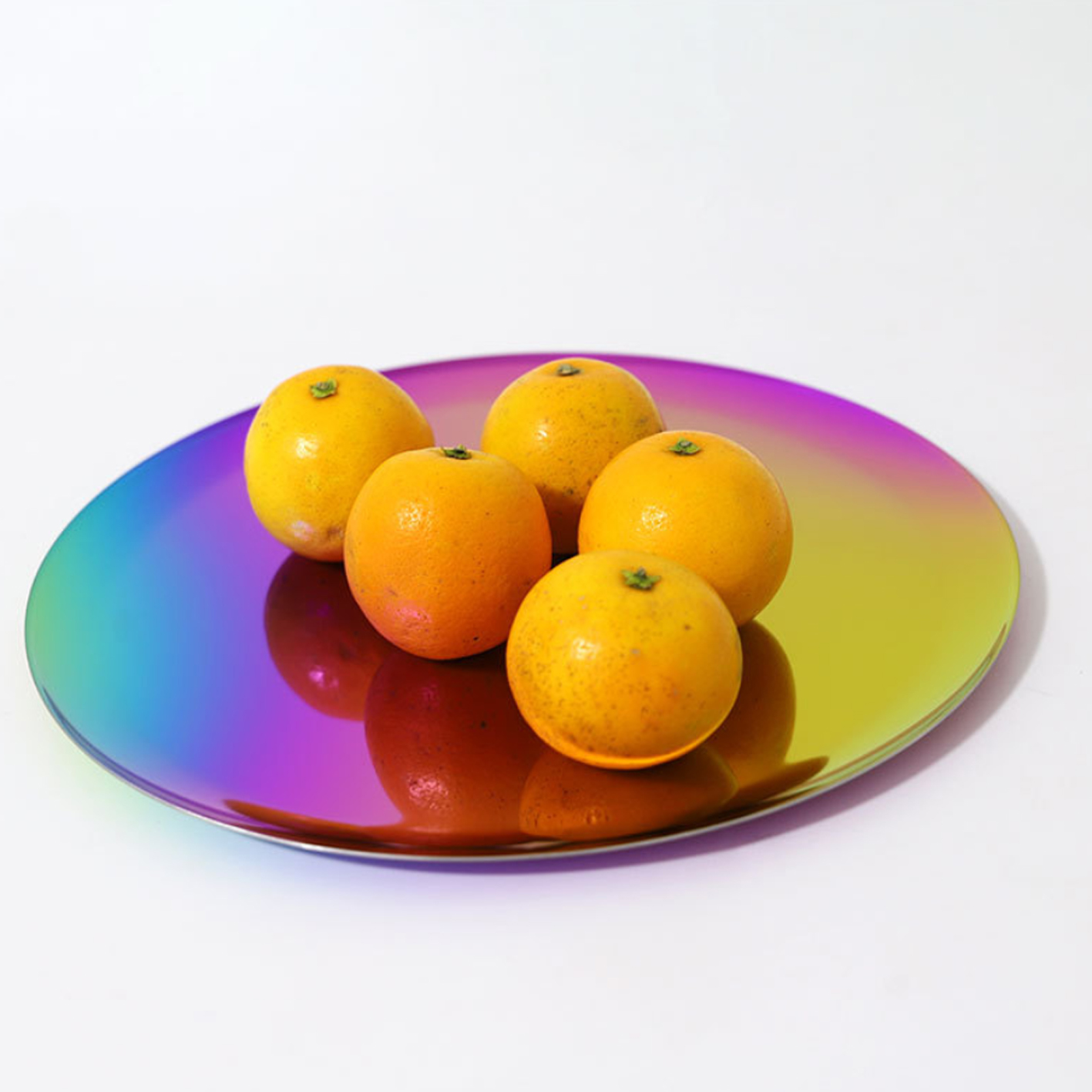 Тарелка круглая из нержавеющей стали плоская-Rainbow