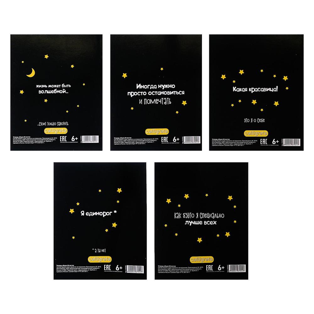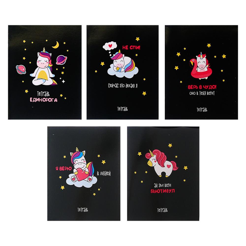 Тетрадь 48 листов в клетку “Единорог на чёрном