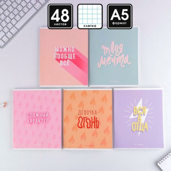 Тетрадь А5, 48 л, «Шрифтовые для девченок», в клетку 80 гр., белизна 96%