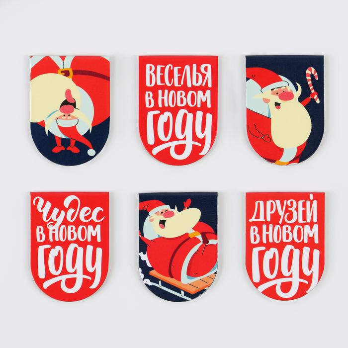 Закладки магнитные на подложке «С Новым Годом», 6 шт