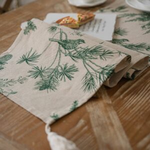 Джутовая дорожка с помпонами-180х33 см-Зеленый