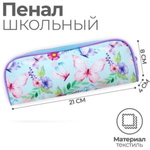Пенал мягкий, 1 отделение, объемный, 80 х 210 х 40 мм, Calligrata "Бабочки