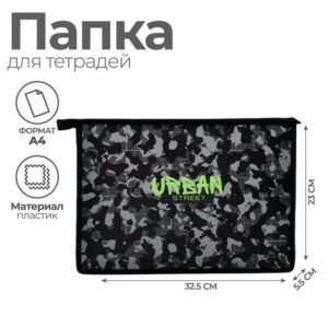 Папка для тетрадей А4, 230 х 325 х 55 мм, молния сверху, пластиковая, ПМ-А4-29 Calligrata "Камуфляж