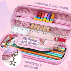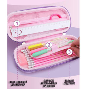 Пенал 3D Pink unicorn-3 отделения-22х15х5см