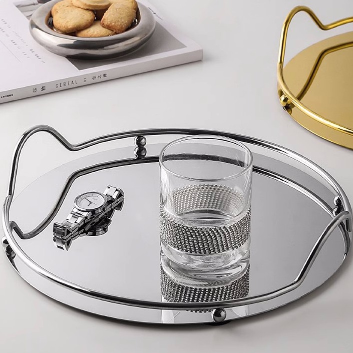 Поднос с ручками "Linea"-34х22х4,5 см-Серебро