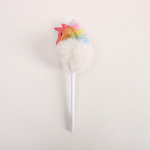 Ручка с пушком "Единорог"гелиевая черная-Белая