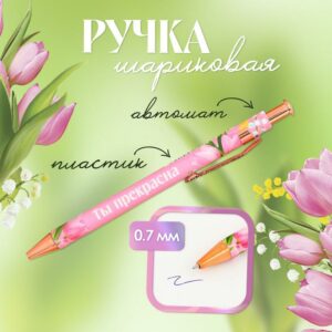 Ручка пластиковая автоматическая «Весны, любви и красоты!», синяя паста, 0,7 мм