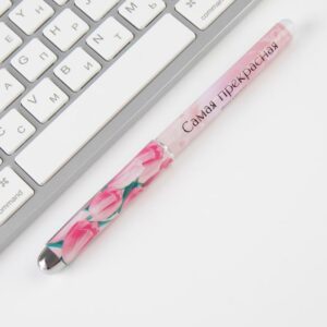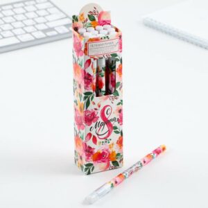 Ручка пластик пиши-стирай с колпачком «С 8 Марта», синяя паста, гелевая 0,5 мм .